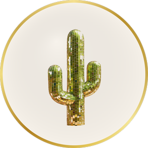 I wanted this to feel like an event, not just a game night. Full tablescape. A dress code. A vibe. 70s desert glam meets Texas — warm earthy tones, glittering gold accents, and my Texas tiles front and center, hand-painted with cacti, cowboys, and desert motifs that felt made for this moment.